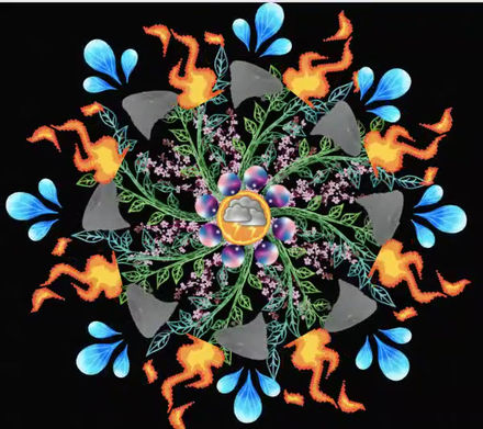 Appuie sur les flèches pour faire bouger la présentation et survole le mandala avec ton curseur pour faire démarrer les animations